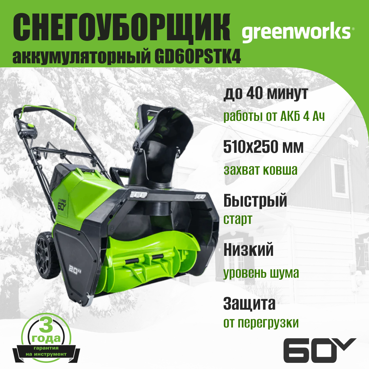 Снегоуборщик GREENWORKS GD60PSTK4, аккумуляторный (2602907UB)