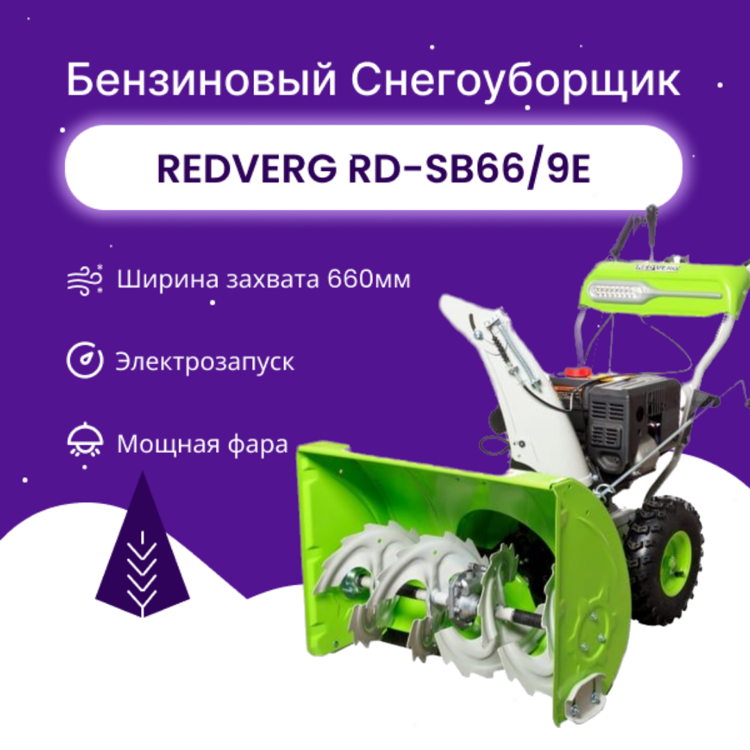 Снегоуборщик бензиновый 9л.с./66см ручной/эл RedVerg RD-SB66/9E интересное: