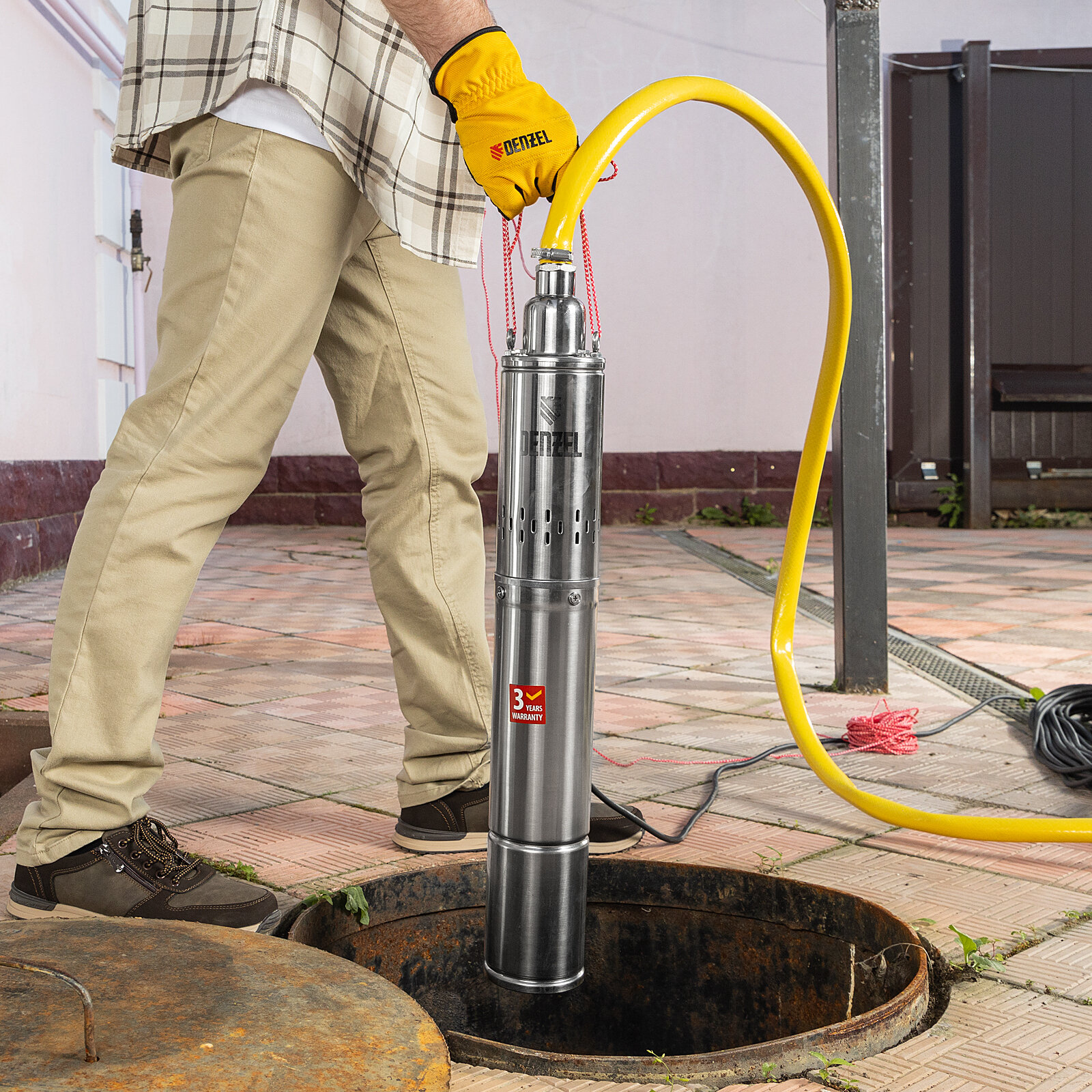 Купить Скважинный насос DWS-4-150, винтовой, диаметр 4", 1300 Вт, 2000 л/ч, напор 150 м Denzel [97254]