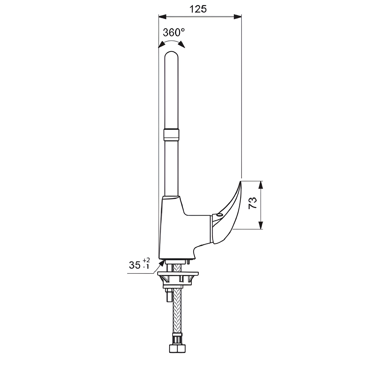 | Плюсы: | Недорогой однорычажный смеситель, легкая установка, в комплекте две гибкие подводки 50 см длиной. |