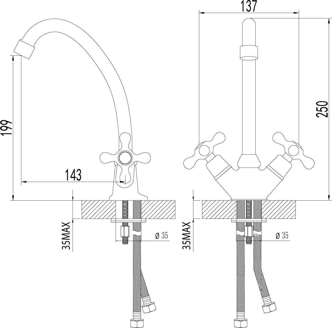 | Диаметр монтажных отверстий | 35 мм |