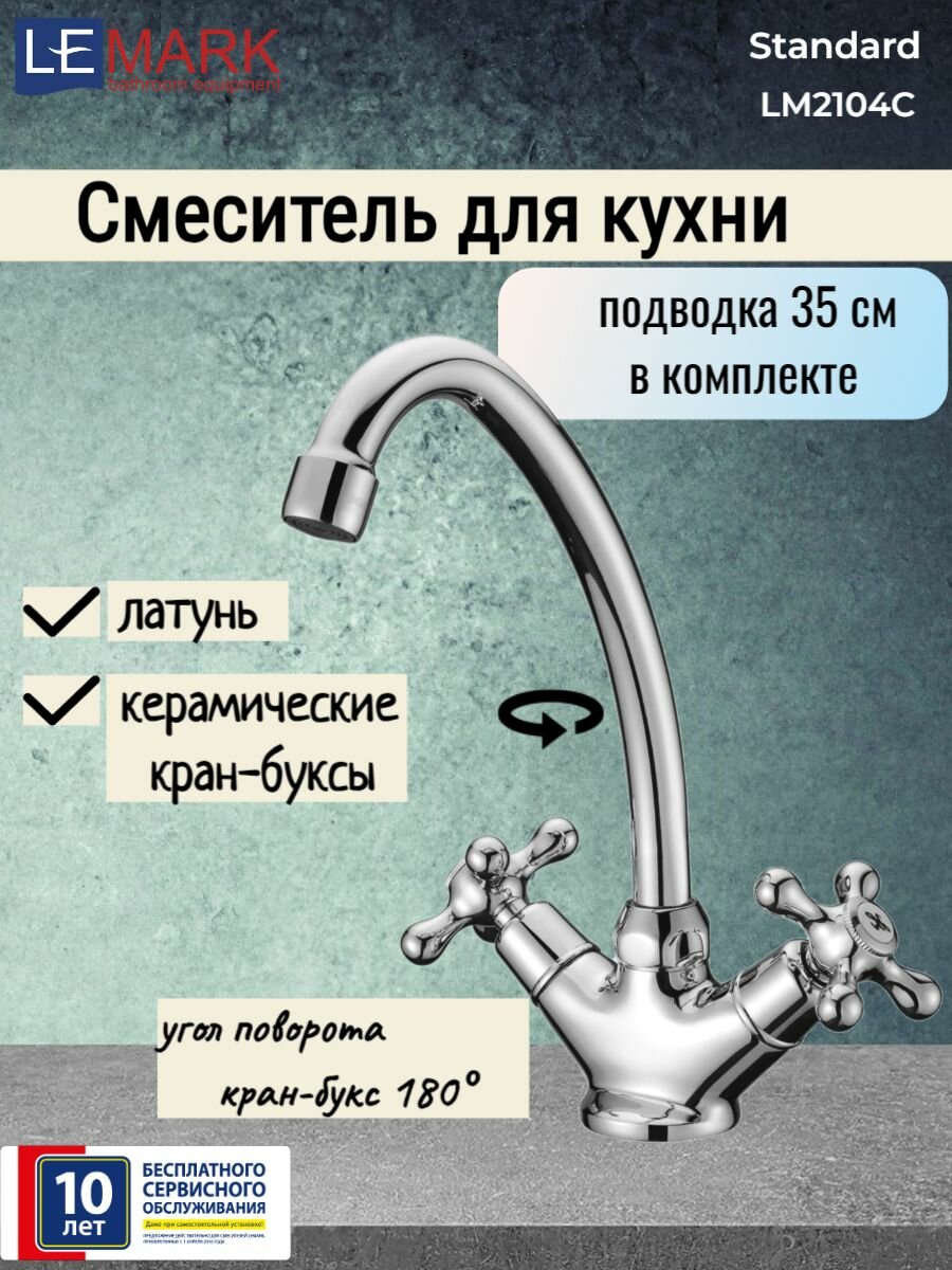 Смеситель для кухни Lemark Standart LM2104C, двухвентильный, хром