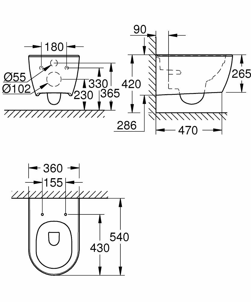 | Минусы: | Нет полного обволакивания водой всех стенок чаши при применении инсталляции Grohe Rapid SL 38772001. |