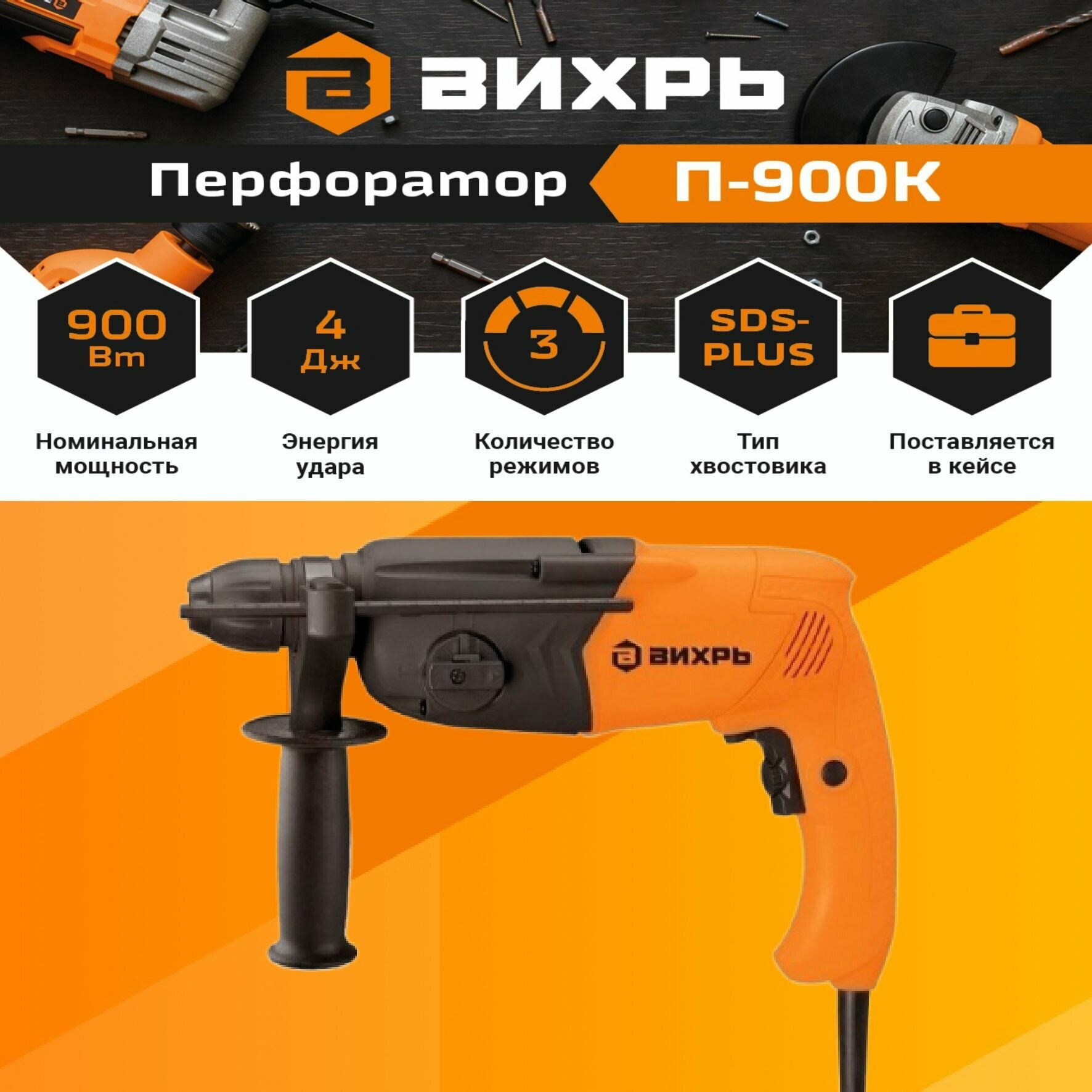 Перфоратор Вихрь П-900к патрон:SDS-plus уд.:4Дж 900Вт (кейс в комплекте)