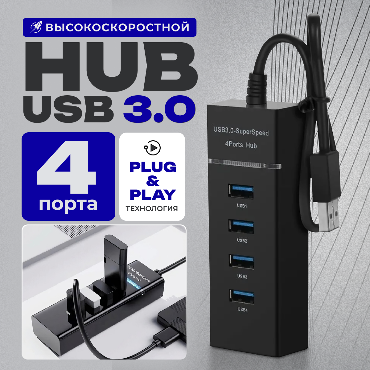 Разветвитель USB 3.0 на 4 порта / 4 USB концентратор с проводом 0,3 м / Универсальный хаб разветвитель / Цвет черный интересное: