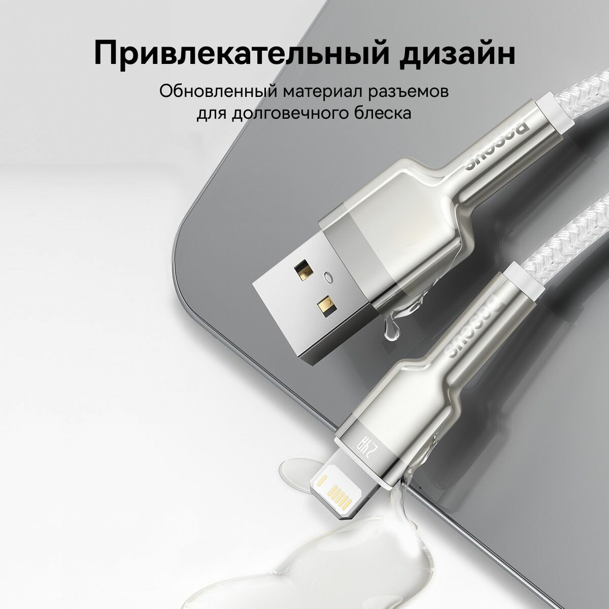 СохранитьКабель Baseus Cafule Series Metal Data Cable USB to IP 2.4A 1m (CALJK-A02) - White интересное: