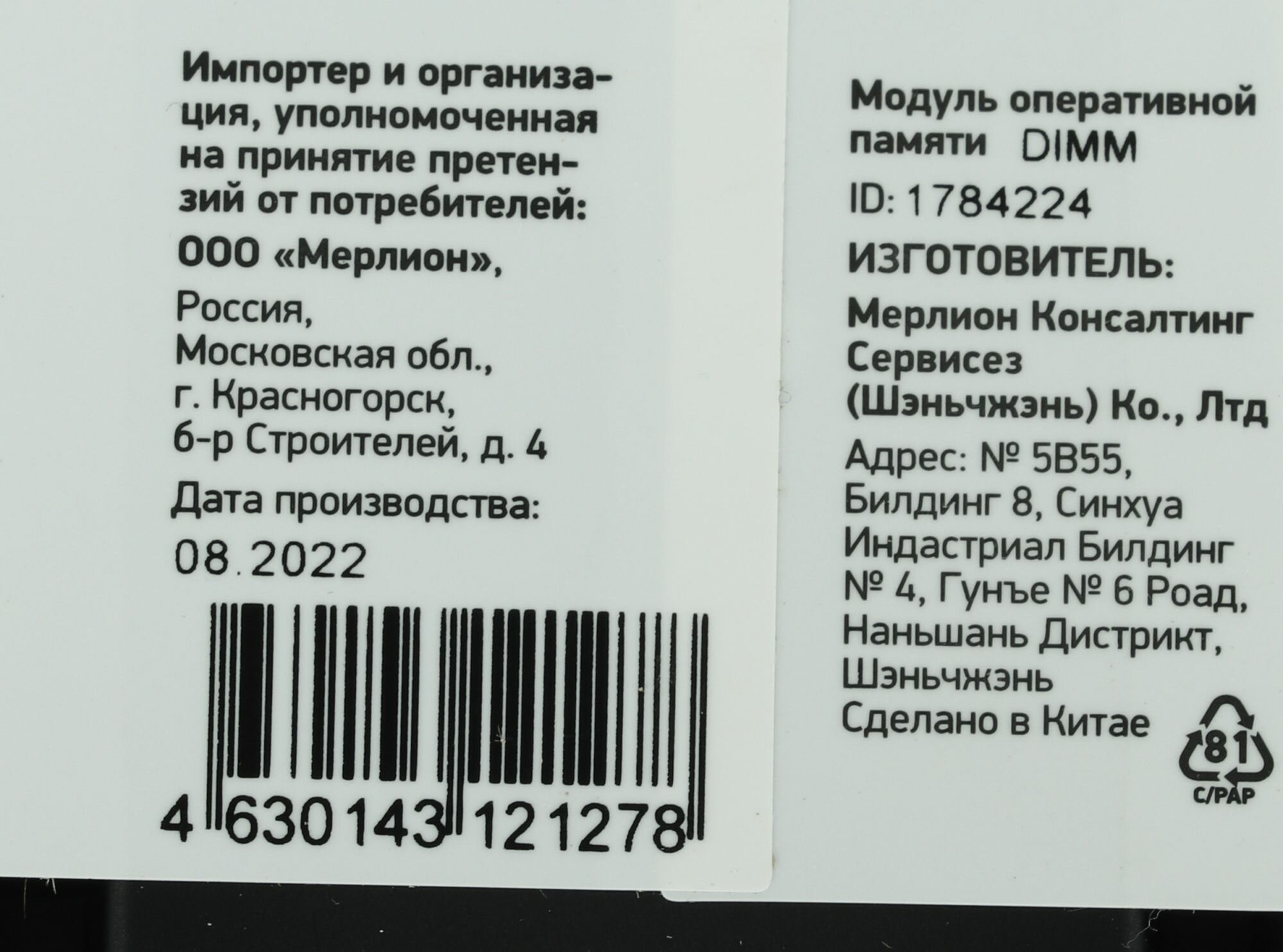 | Количество модулей в комплекте | 1 шт. |