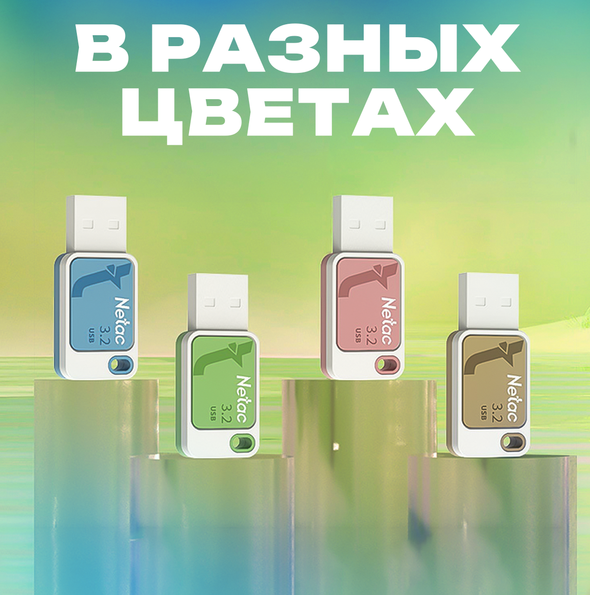 Флешка Netac UA31, 128GB, USB 3.2, Зеленый/Белый (Smoothies Green) NT03UA31N-128G-32GN