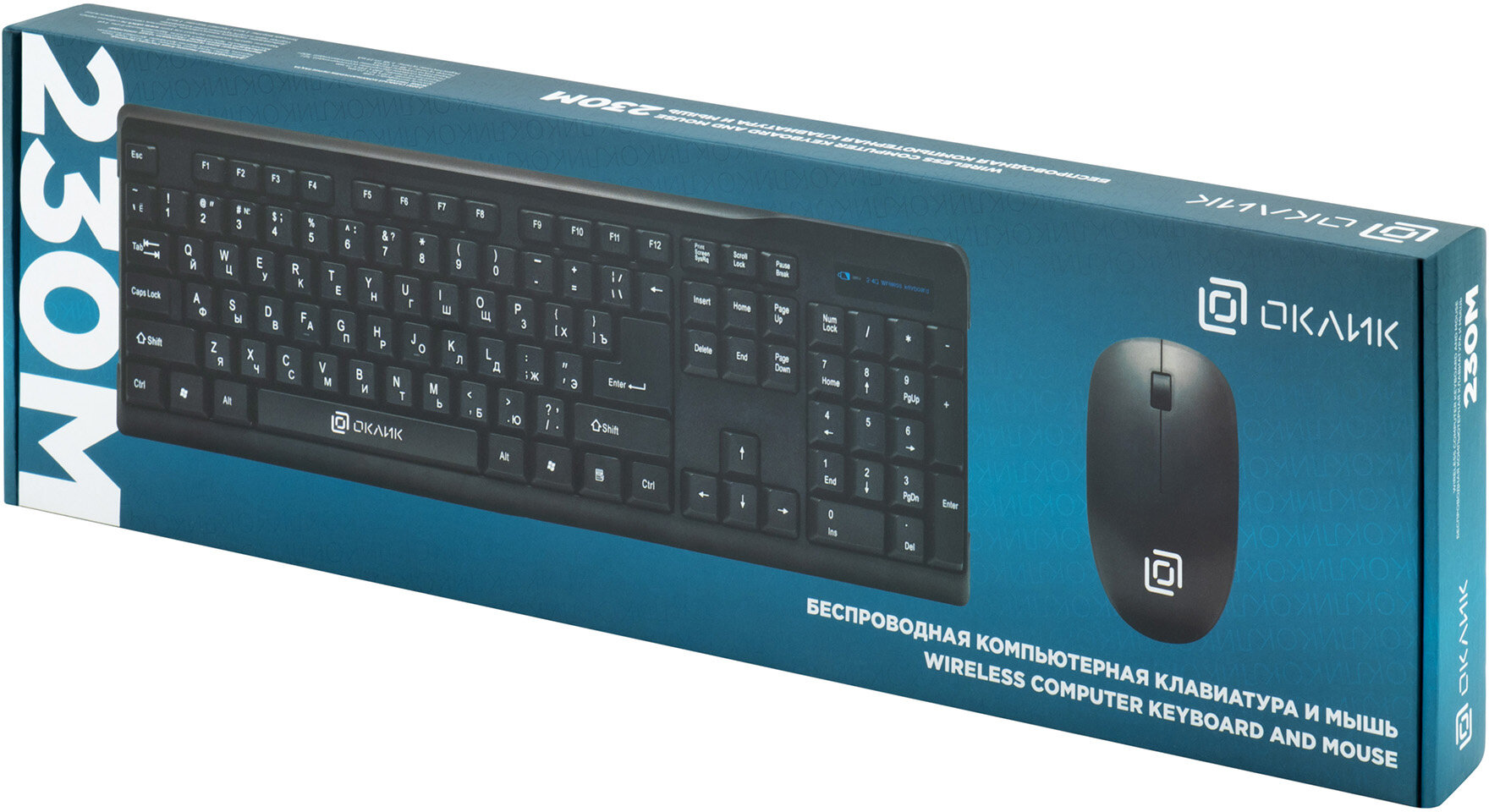 Клавиатура с мышью OKLICK 230M клавиатура черная, мышь черная USB беспроводная