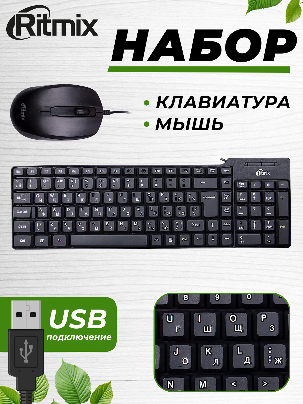 Клавиатура и мышь Ritmix RKC-010 комплект чёрная