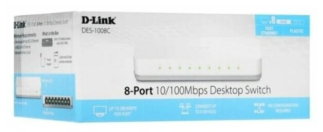 D-Link DES-1008C B1A Неуправляемый коммутатор с 8 портами 10 100Base-TX и функцией энергосбережения
