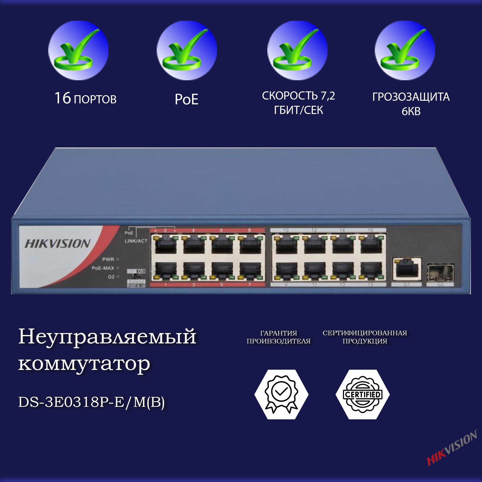 DS-3E0318P-E/M(B) PoE коммутатор Hikvision