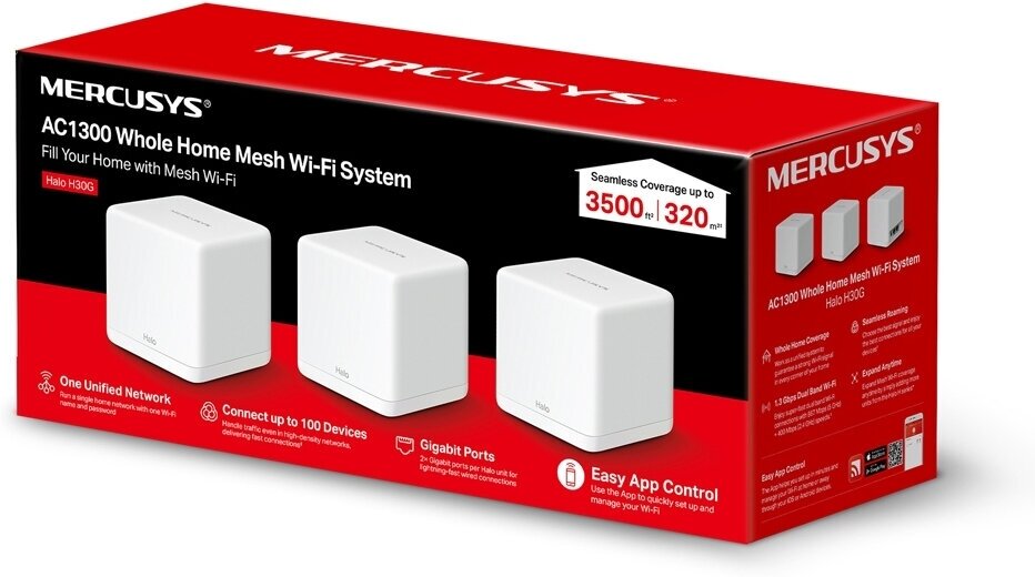 Mercusys Halo H30G(3-pack) AC1300 Домашняя Mesh Wi-Fi система .