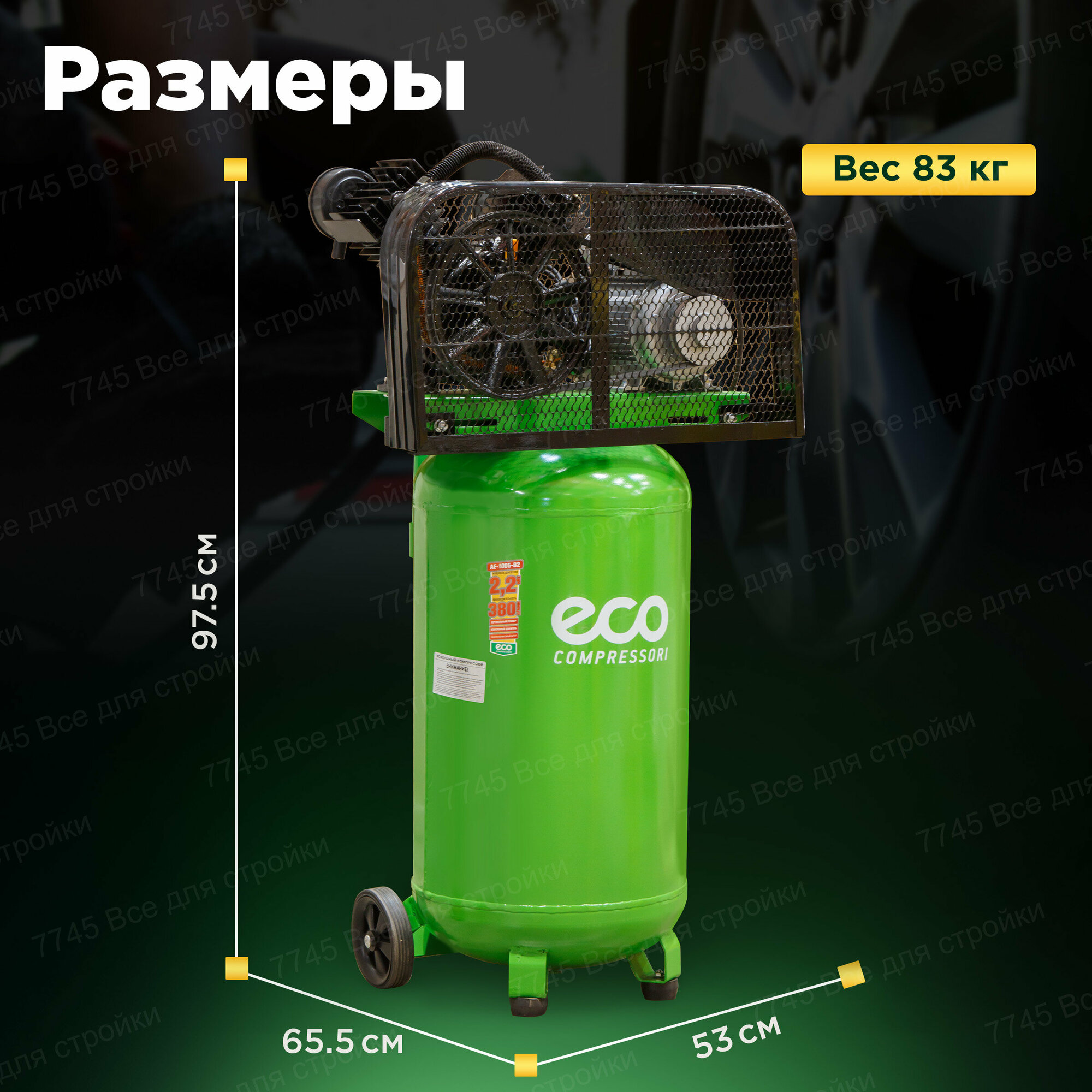 Компрессор ECO AE-1005-B2 (380 л/мин, 8 атм, ременной, масляный, вертикальный ресив. 100 л, 220 В, 2.20 кВт) (AE-1005-B2)