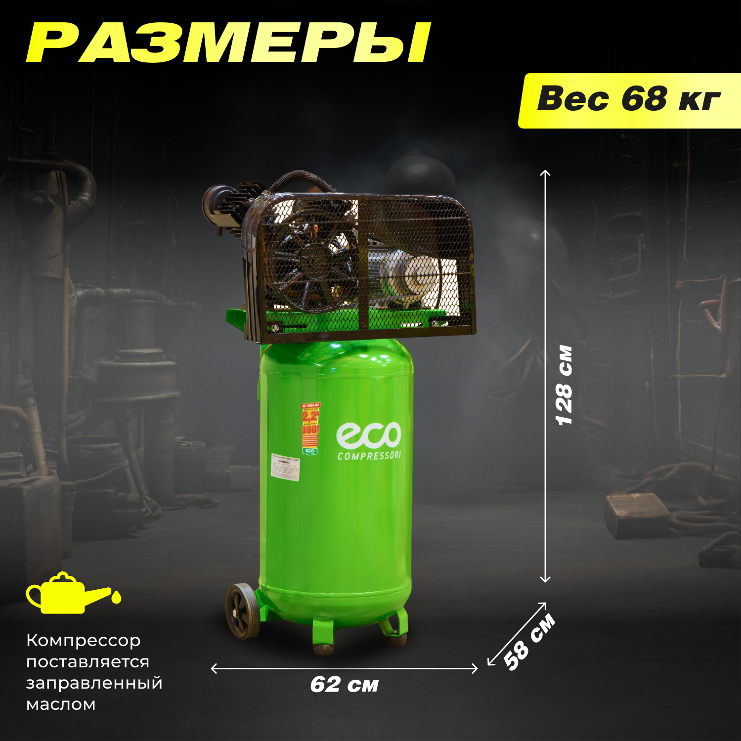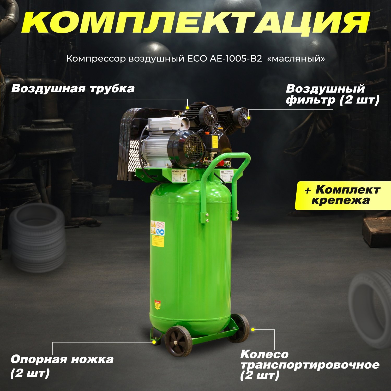Компрессор масляный Eco AE-1005-B2, 100 л, 2.2 кВт
