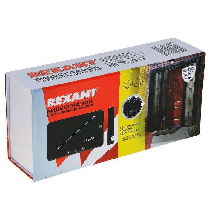 Видеоглазок дверной REXANT 45-0249 с функцией записи видео/фото по движению, ночной режим работы