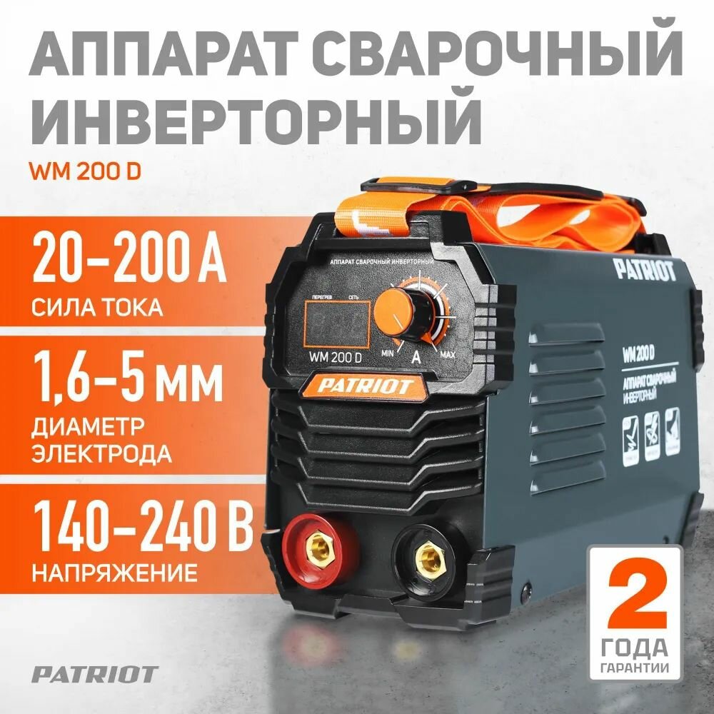 Аппарат сварочный инверторный PATRIOT WM 200 D /MMA /200 А / 9,1 кВт/ ПВ 70%/ работа от 140 В