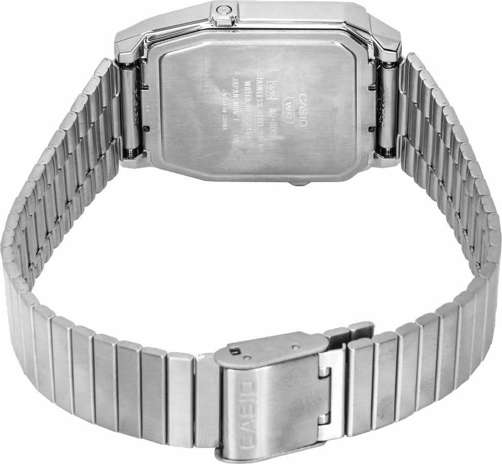 AQ-800EC-2A Casio наручные часы кварцевые WR30 (3 атм) мужские, женские серебряный секундомер будильник отображение числа, второй часовой пояс, отображение дня недели, отображение месяца акриловое стекло
