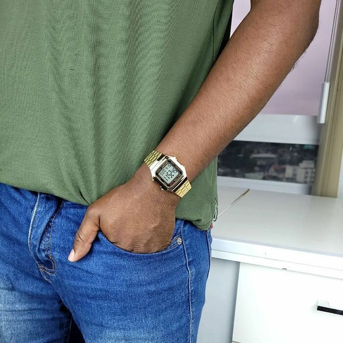| Отзыв: | Супер "олд скульные" и стильные часы. Эта модель смотрится нормально на мужской руке, в смысле вариации 178 модели. Я сначала купил самые аутентичные Casio, модель A168W-1, но они выглядят слишком маленькими на мужской руке(у меня рост 183, среднее телосложение), а вот на женской руке они смотрятся отлично ну или на мужской небольшого размера. В общем очень советую сравнить эти модели на руке. |