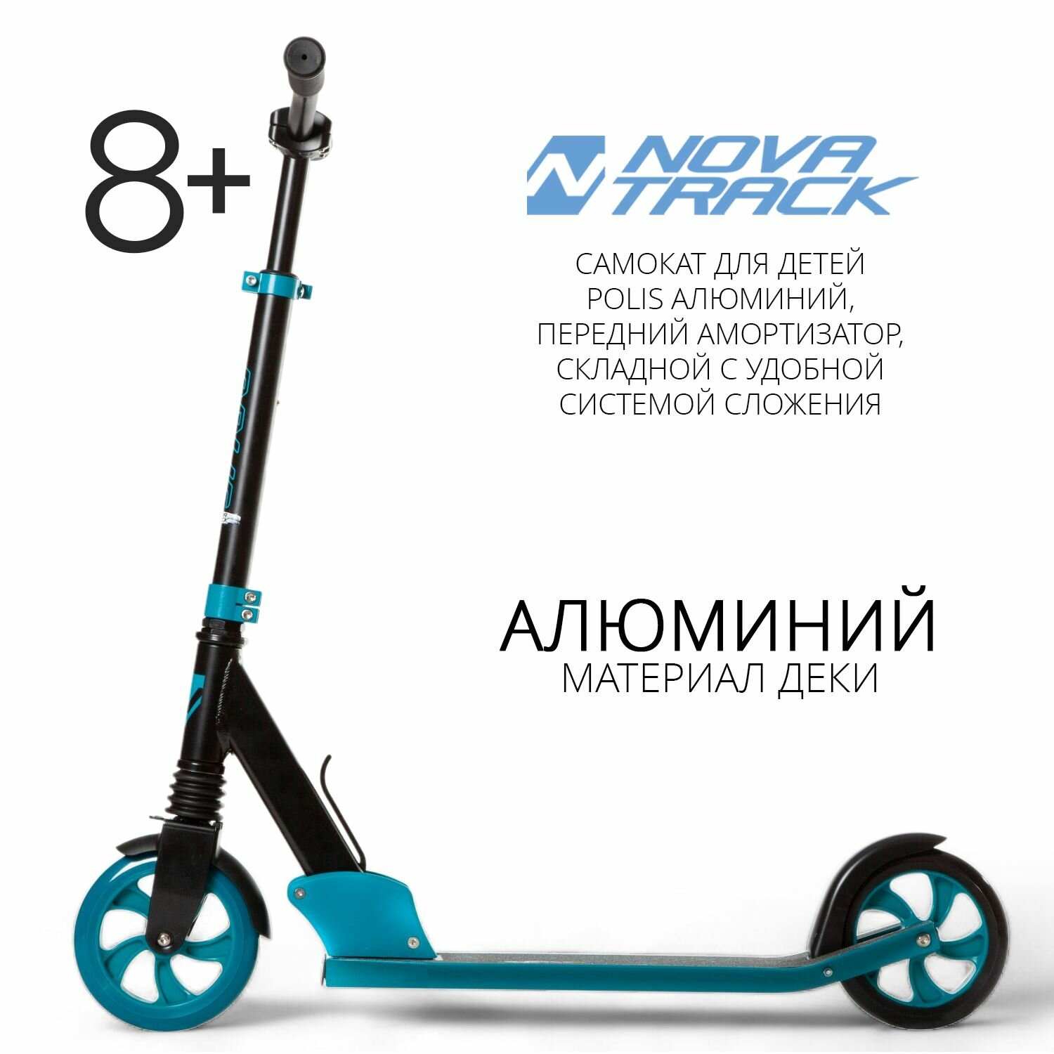 Самокат для детей NOVATRACK POLIS алюминий, передний амортизатор, складной с удобной системой сложения