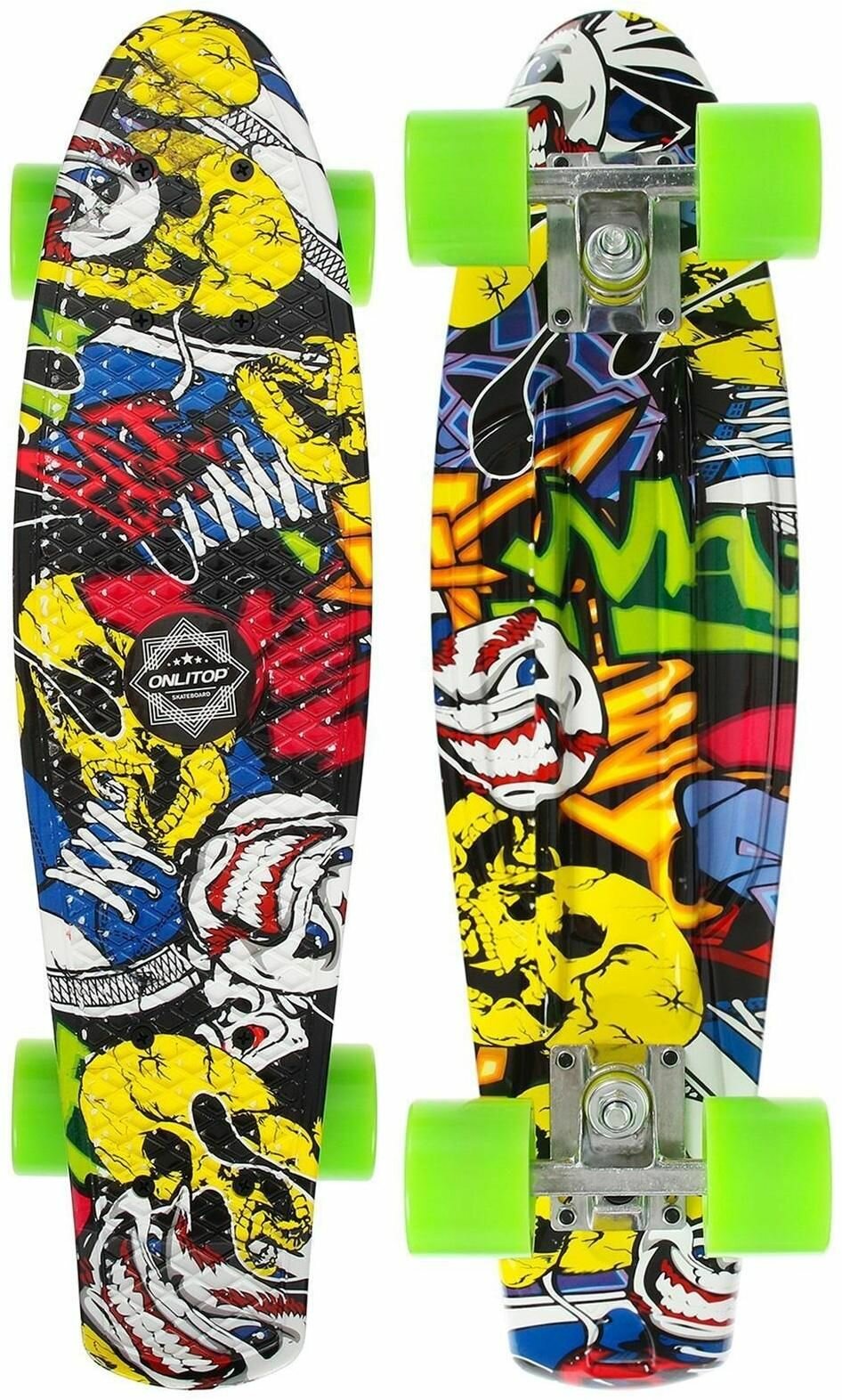 Купить Скейтборд детский для начинающих R2206, размер 56 х 15 см, колёса PU, АBEC 7, алюминиевая рама, цвет граффити, круизер, доска для катания и трюков