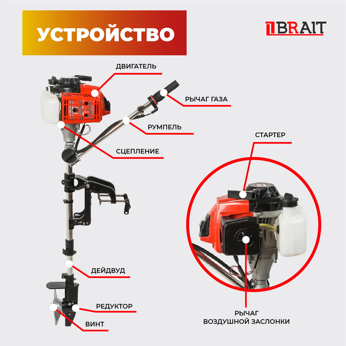 Мотор лодочный BRAIT BOM-63 (2,2 кВт 3.5 л.с. объем 63см)