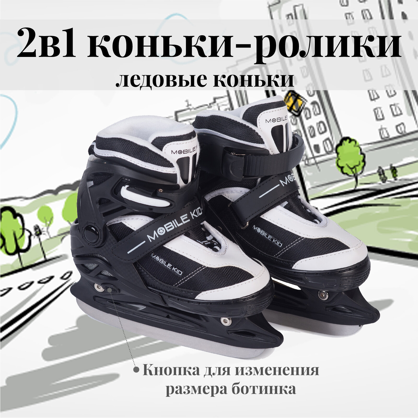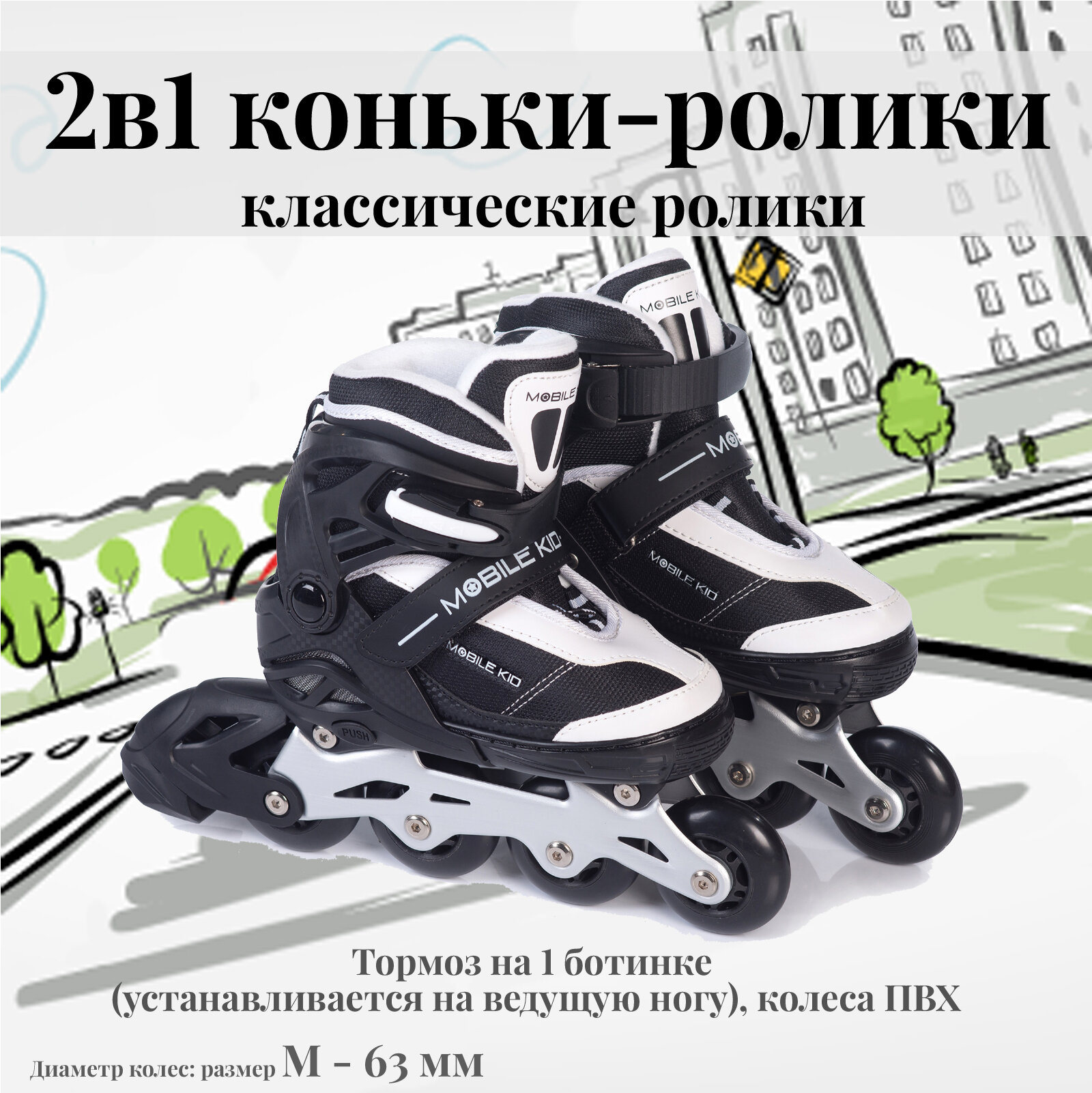 Раздвижные коньки-ролики Mobile Kid UNI Skate (2 в 1), размер M (black White) .