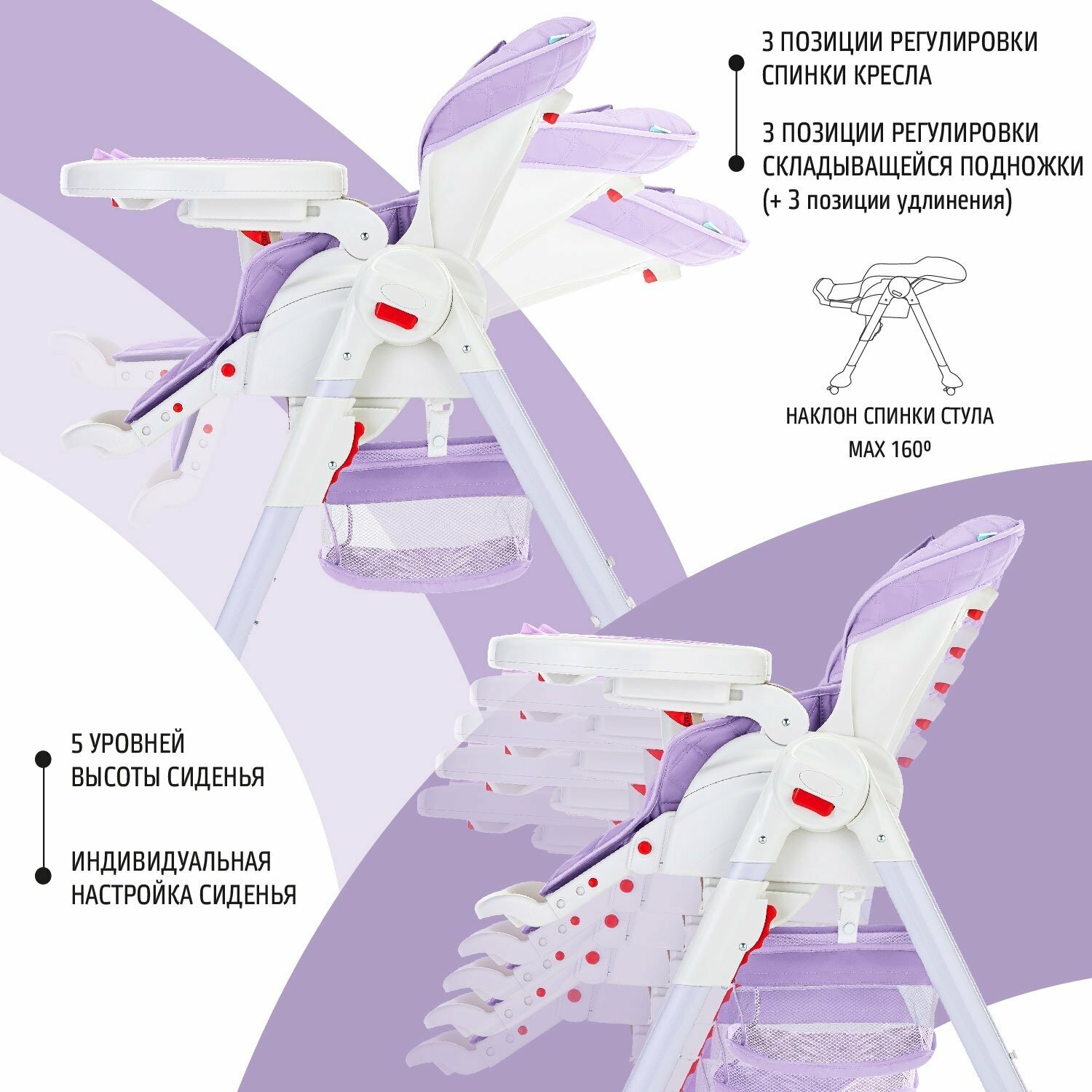 Стул-шезлонг для кормления Nuovita Tutela (Lilla perforata/Сиреневый с перфорацией)