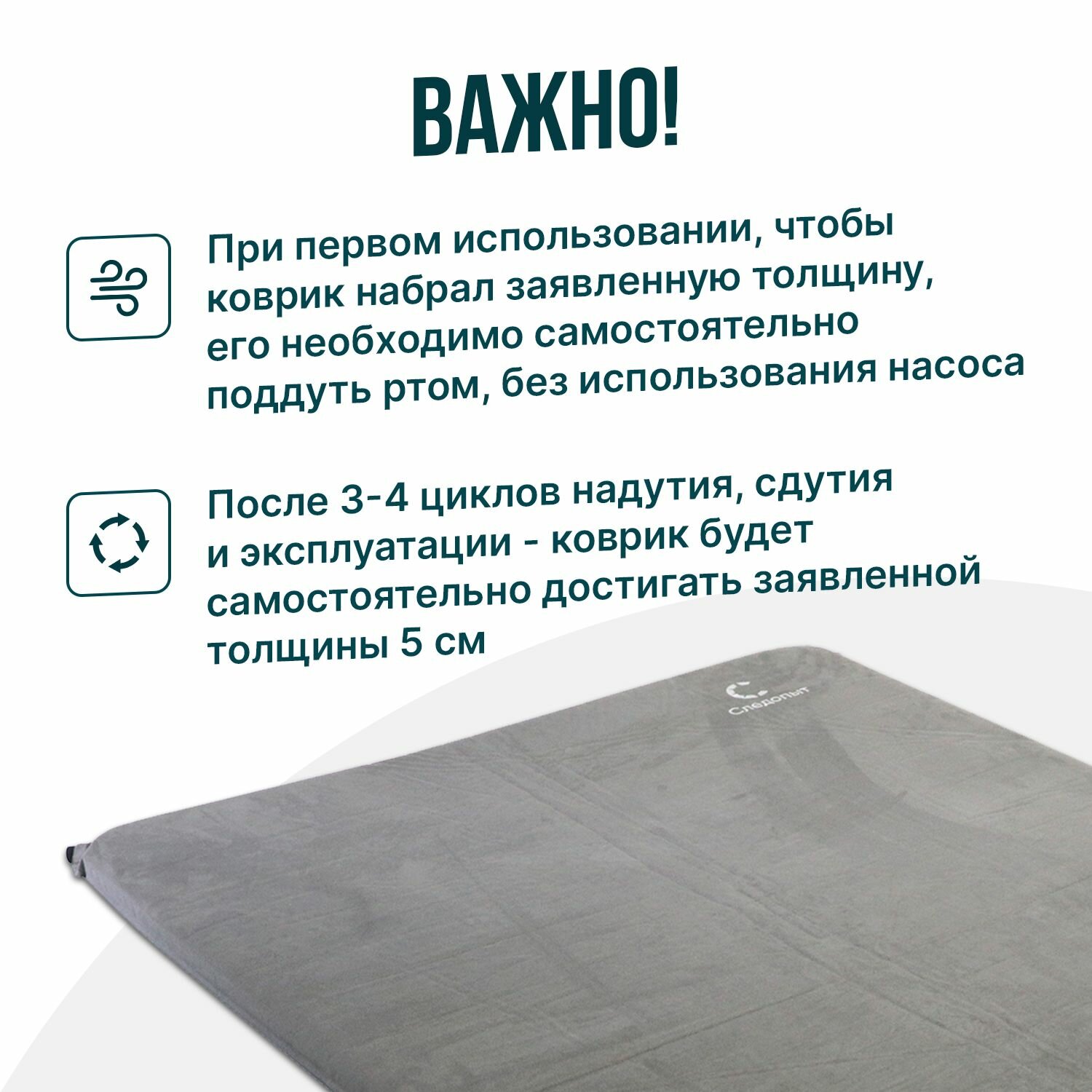 Коврик самонадувающийся туристический 5 см толщина "следопыт" 188x66x5 cм, стандарт/ Походный матрас кемпинговый/ Коврик в палатку самонадувной