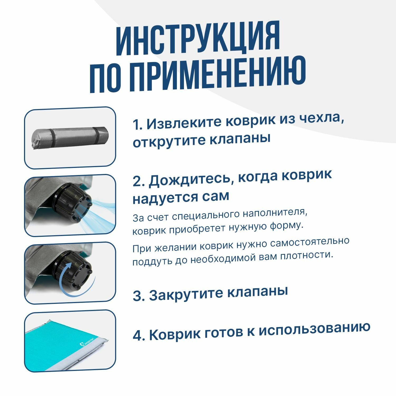 Самонадувающийся коврик туристический "следопыт" Premium 191x62x5 cм , походный матрас кемпинговый, коврик в палатку самонадувной