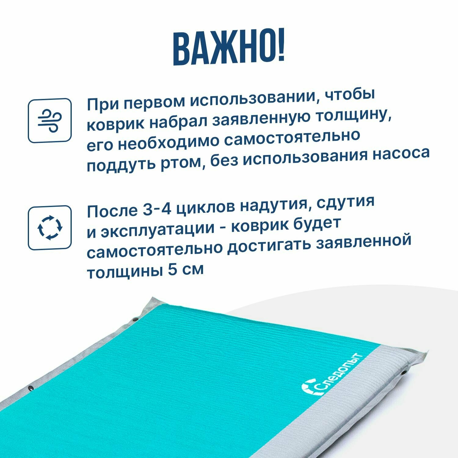 Коврик самонадувающийся двухместный туристический 5 см толщина "следопыт" Premium 187x130x5 cм , Походный матрас двухспальный, Коврик в палатку двойной самонадувной