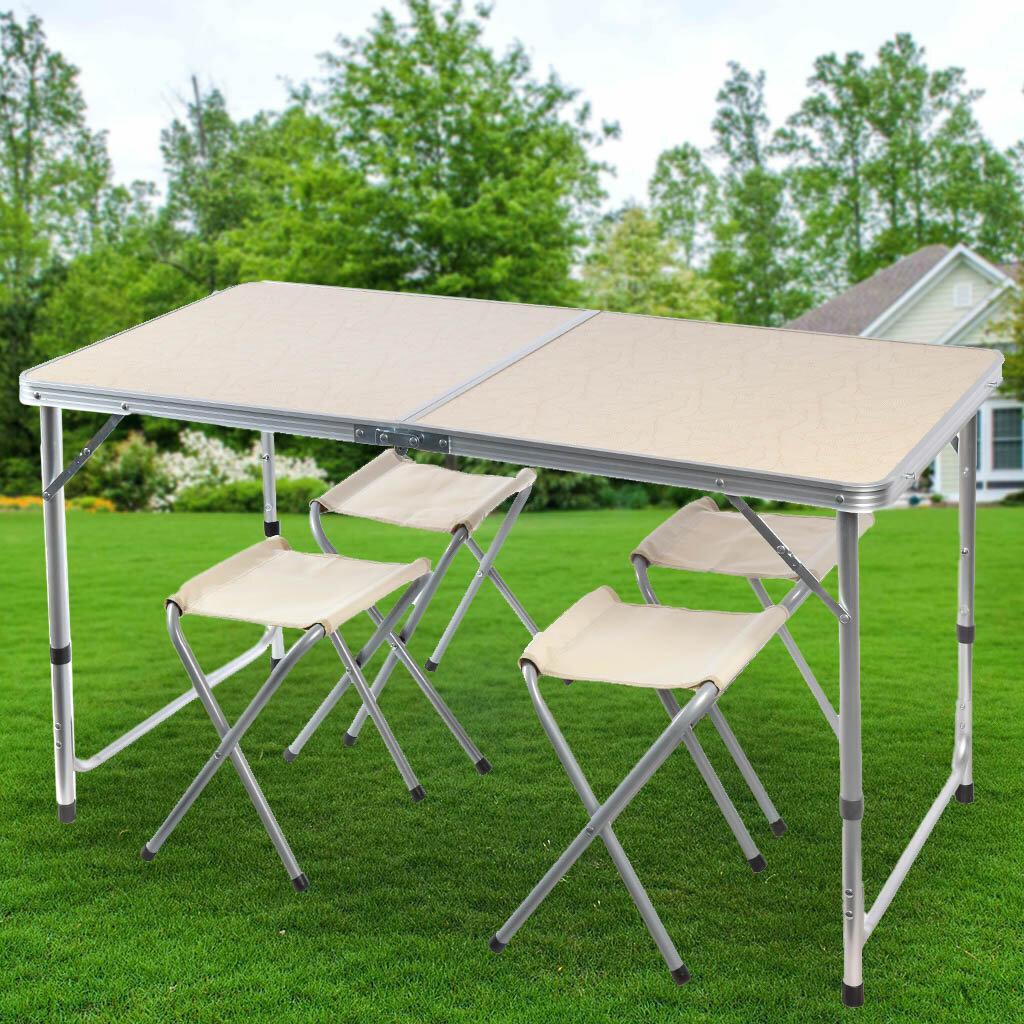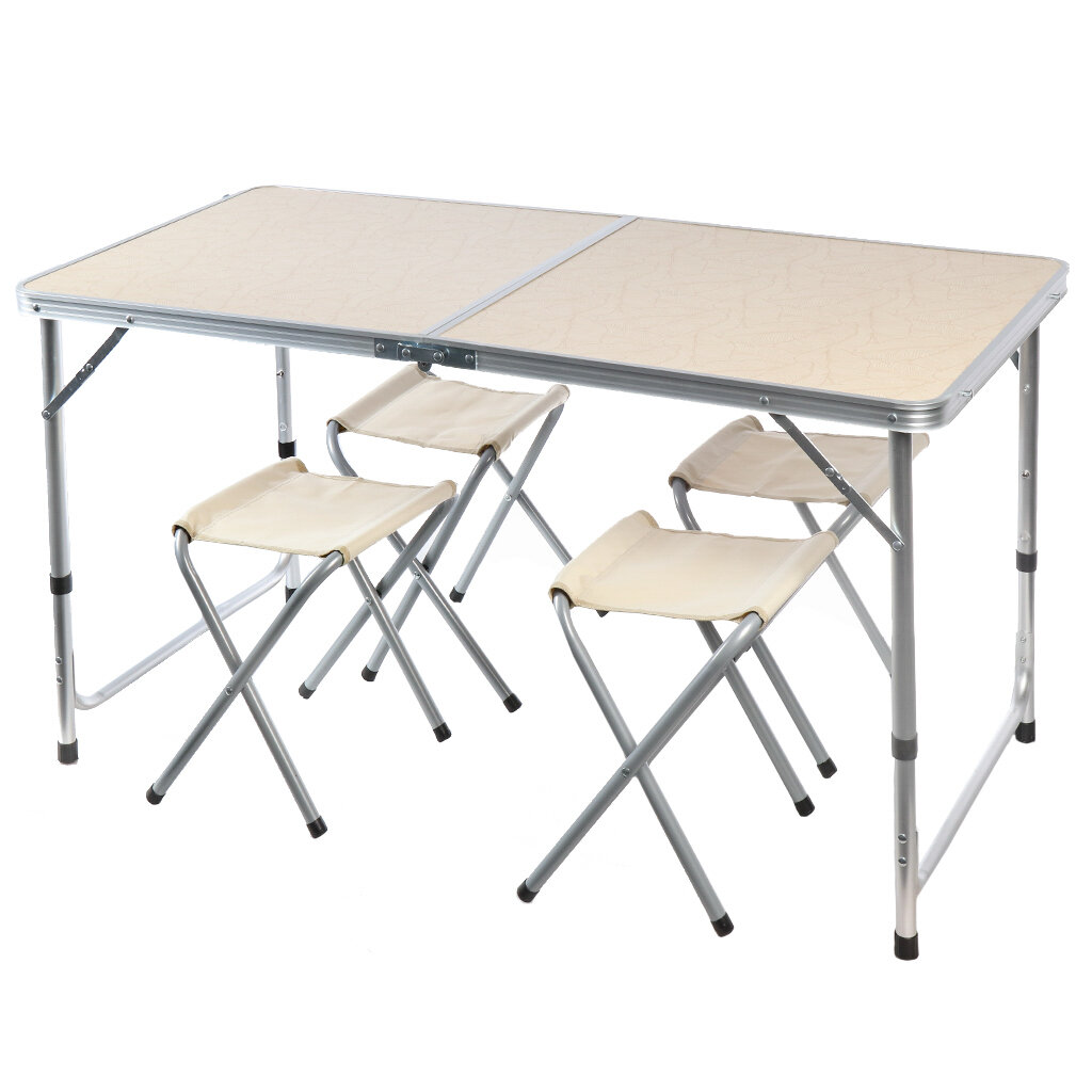 Купить Стол складной металл, прямоугольный, 120х60х68.5 см, столешница МДФ, беж, Green Days, 4 стула