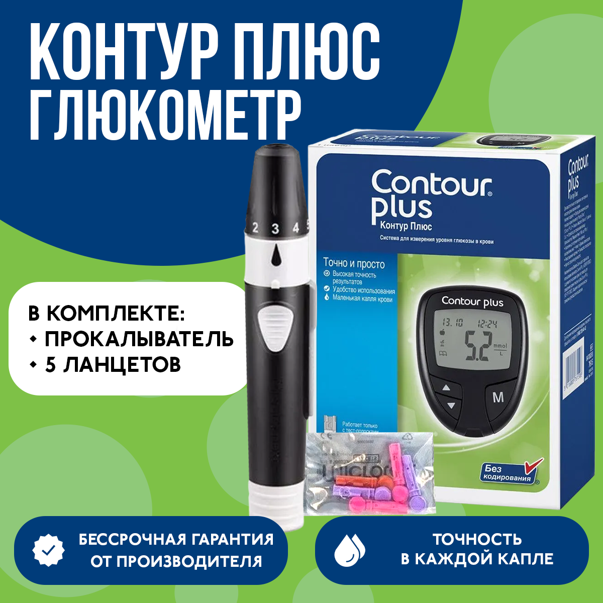 Глюкометр Контур Плюс+прокалыват.+ланцеты