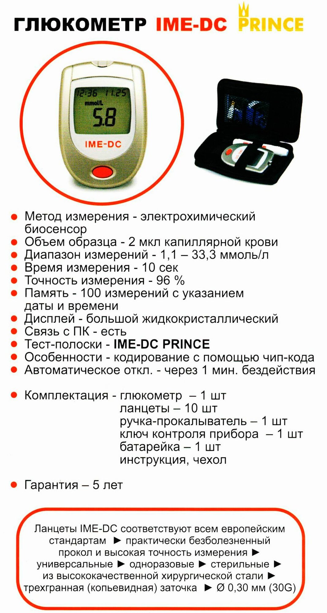 Глюкометр IME-DC PRINCE + 10 тест-полосок для измерения уровня сахара в крови интересное: