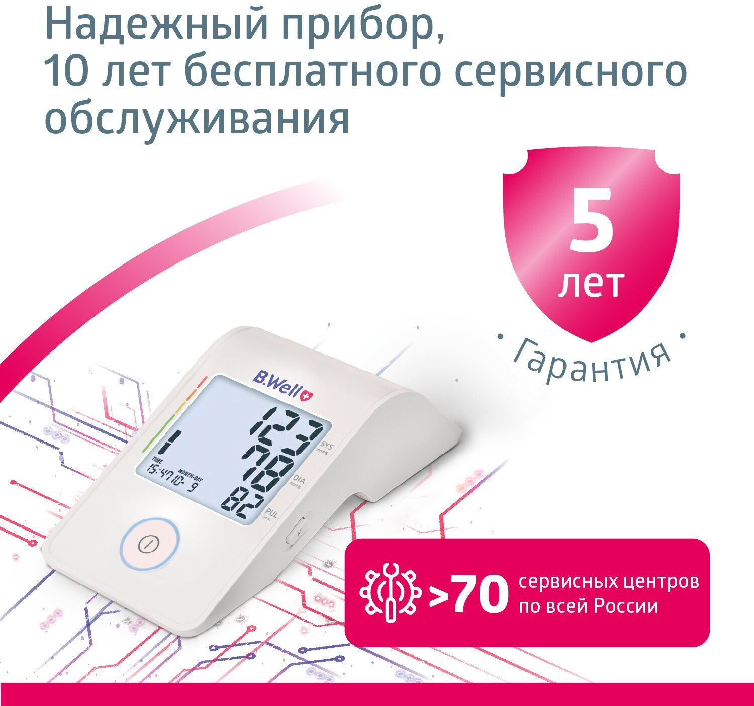 Тонометр B.Well MED-53 (M-L) манжета (22-42 см) адаптер USB индикатор аритмии подсветка дисплея