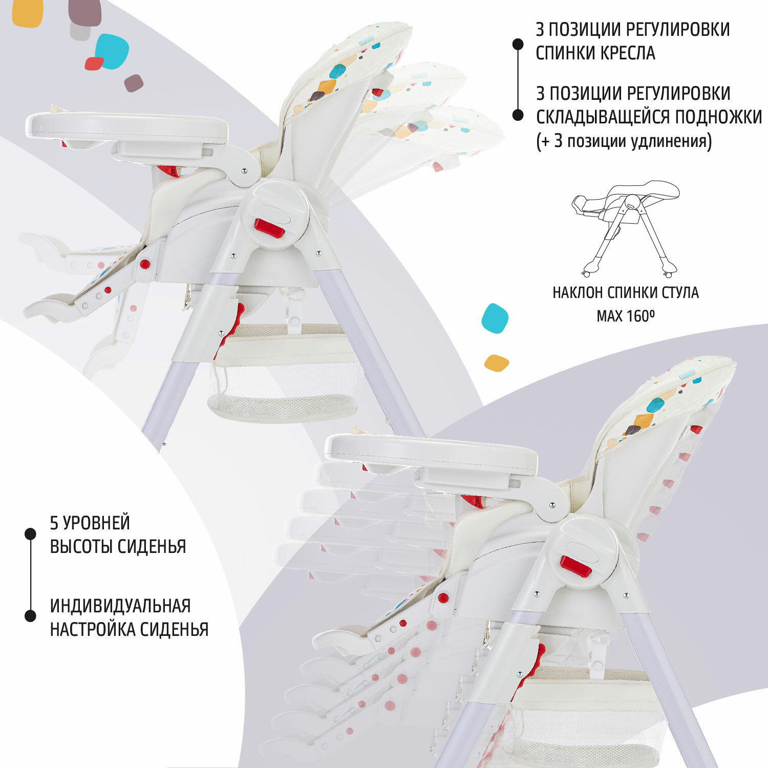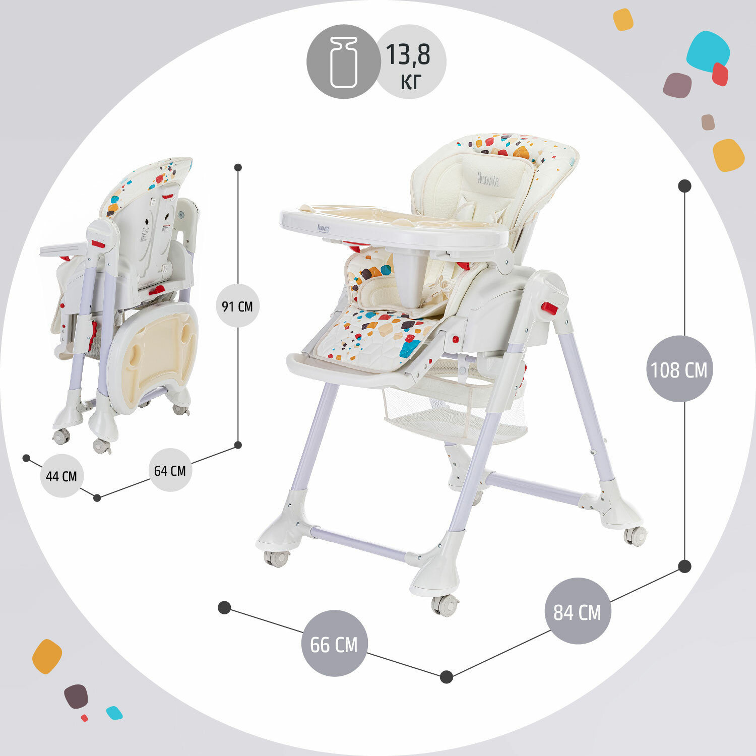 Купить Стул-шезлонг для кормления Nuovita Tutela (Coriandolo-2 disegno/Конфетти-2)