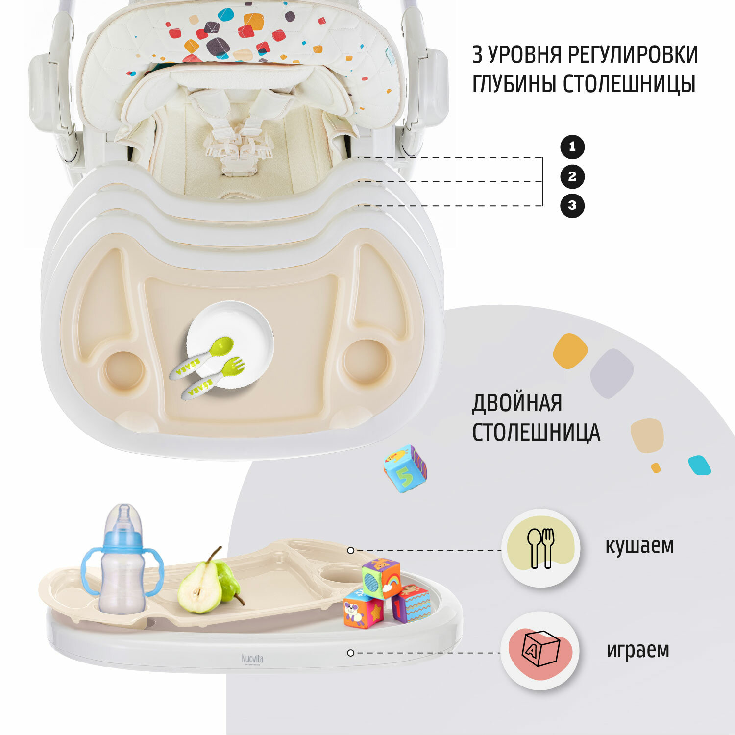 СохранитьСтул-шезлонг для кормления Nuovita Tutela (Coriandolo-2 disegno/Конфетти-2) интересное: