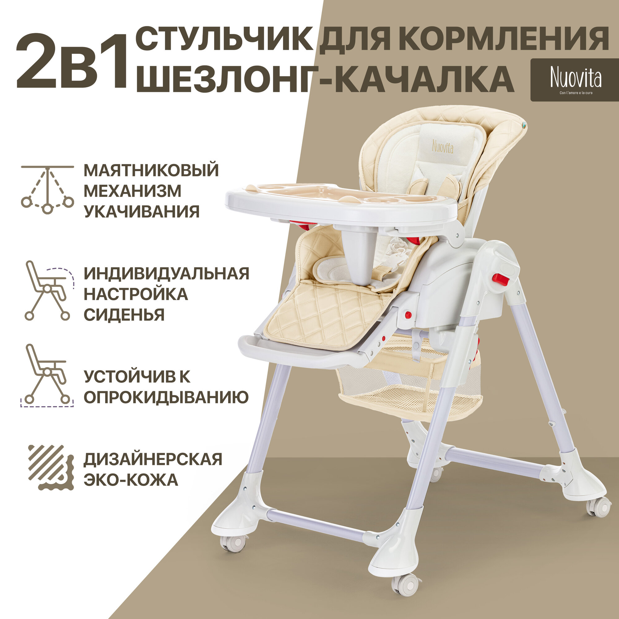 Купить Стул-шезлонг для кормления Nuovita Tutela (Beige trapuntata/Бежевый со стежкой)