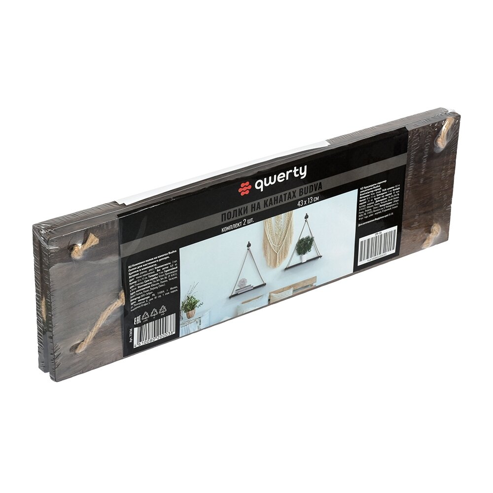 QWERTY Комплект полок на канатах Budva, 43x13, толщина 1 см, 2шт 72036 интересное: