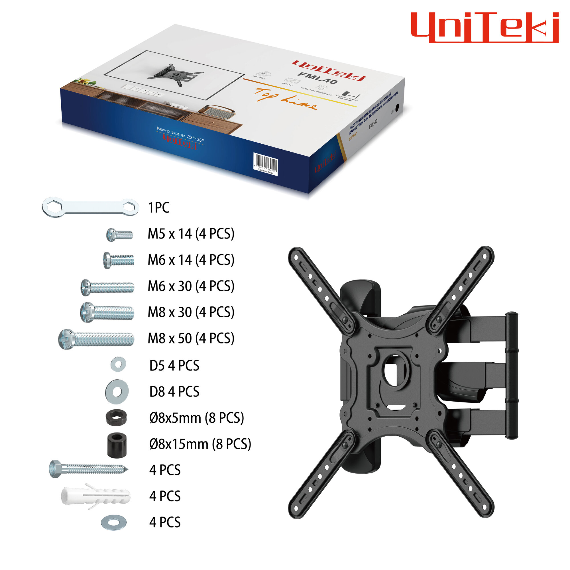 Кронштейн для телевизора UniTeki FML40W с большим вылетом, поворотно-наклонный, для диагонали 23-55 дюймов