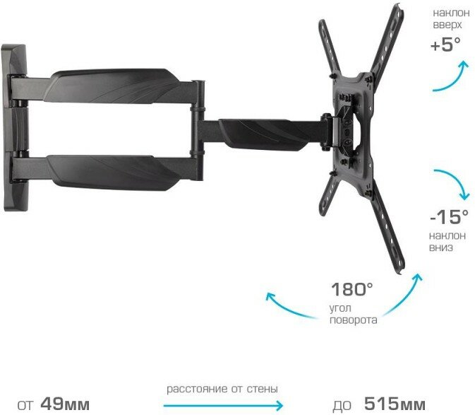 Кронштейны для техники ARM MEDIA Кронштейн настенный ARM MEDIA COBRA-40 22-65" (наклон +5°/-15°, поворот 180°, до 35 кг, чёрный)