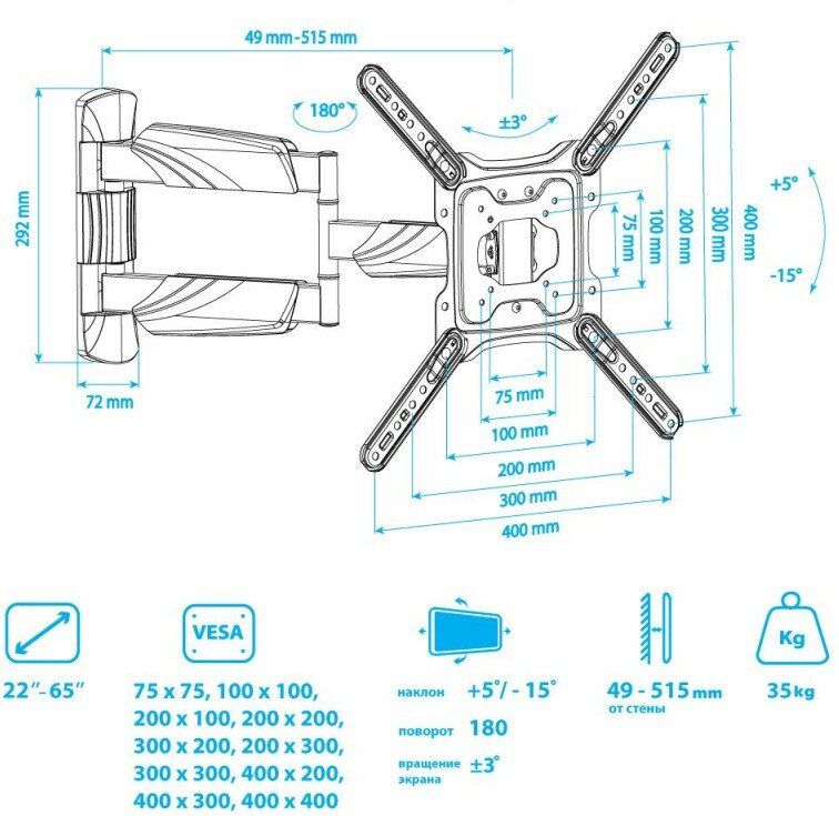| Стандарт Vesa | 100x100 мм / 400x400 мм |