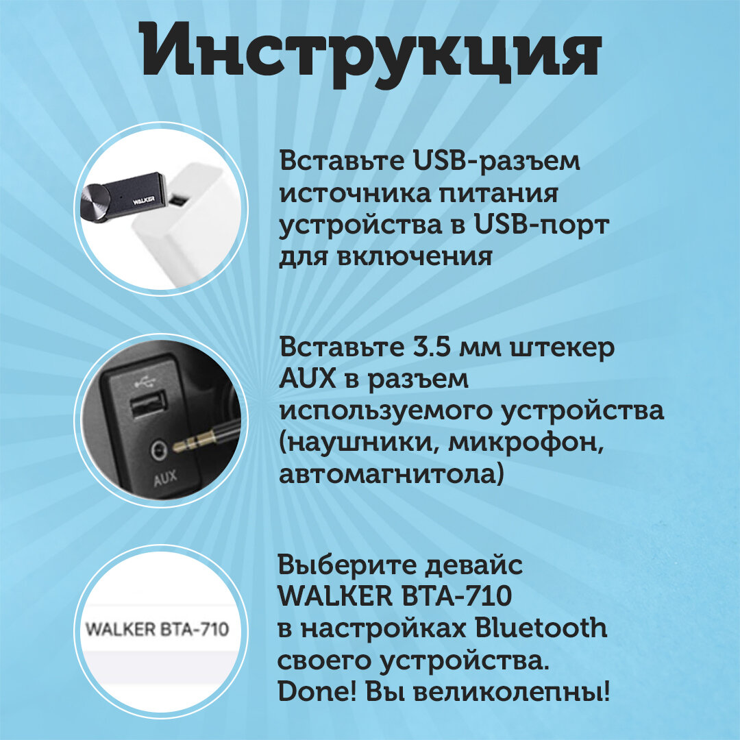 Ресивер, WALKER, BTA-710, черный, Bluetooth 5.0, микрофон // усилитель звука в машину для колонок, звуковой стереоусилитель для автомобиля интересное: