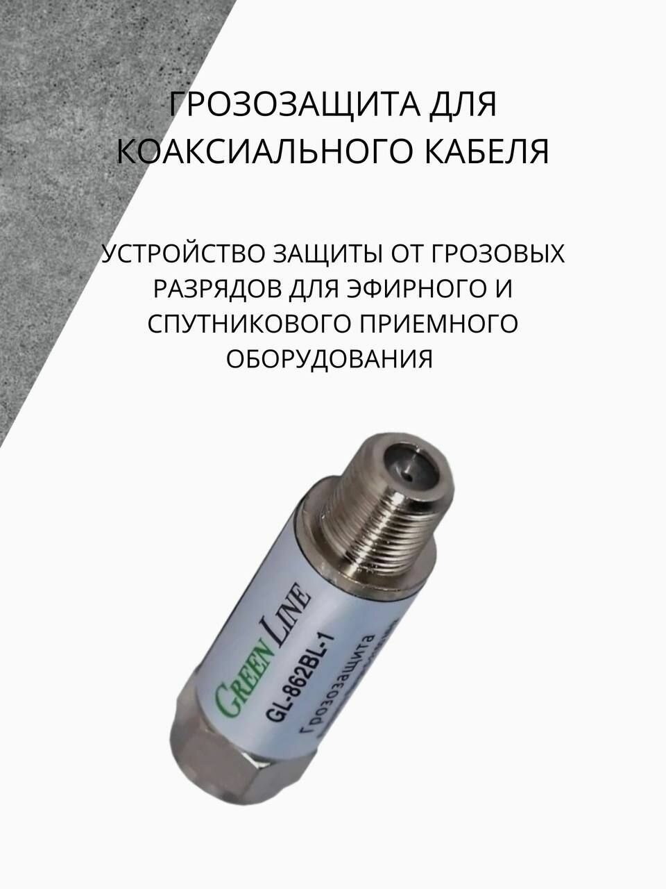 Грозозащита для коаксиального кабеля Green Line GL-862BL-1 с диапазоном 5-2150 мГц ( для DVB-T2, Цифрового ТВ, Спутникового ТВ: Триколор ТВ, НТВ +, МТС, Билайн, Телекарта) интересное: