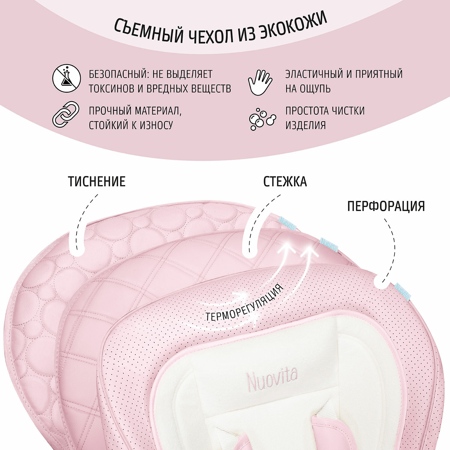 Стул-шезлонг для кормления Nuovita Tutela (Rosa goffratura/Розовый с тиснением)