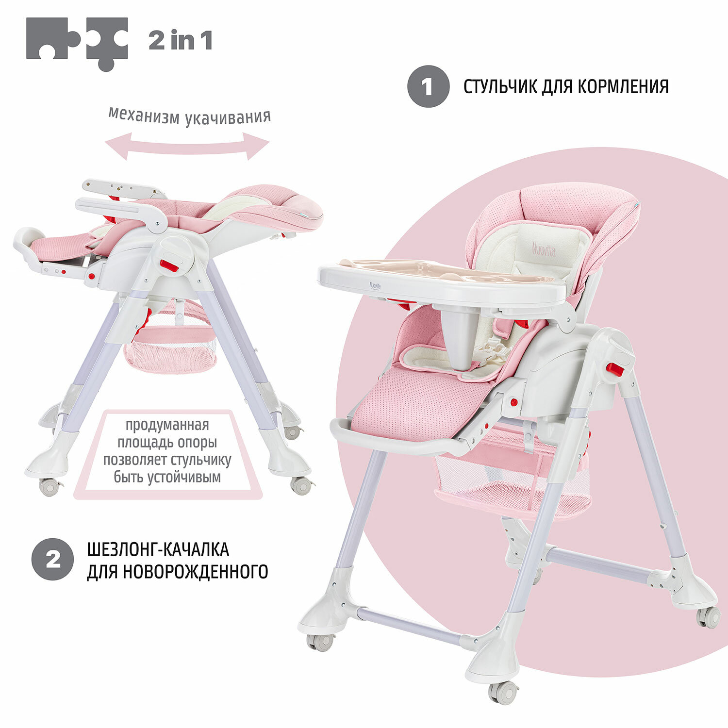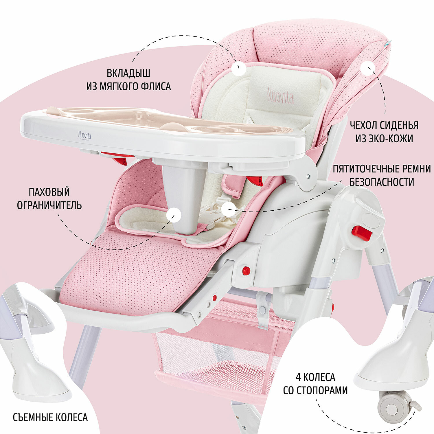Стульчик для кормления Nuovita Orbita (Rosa pallido, Rosa/Бледно-розовый, Розовый)