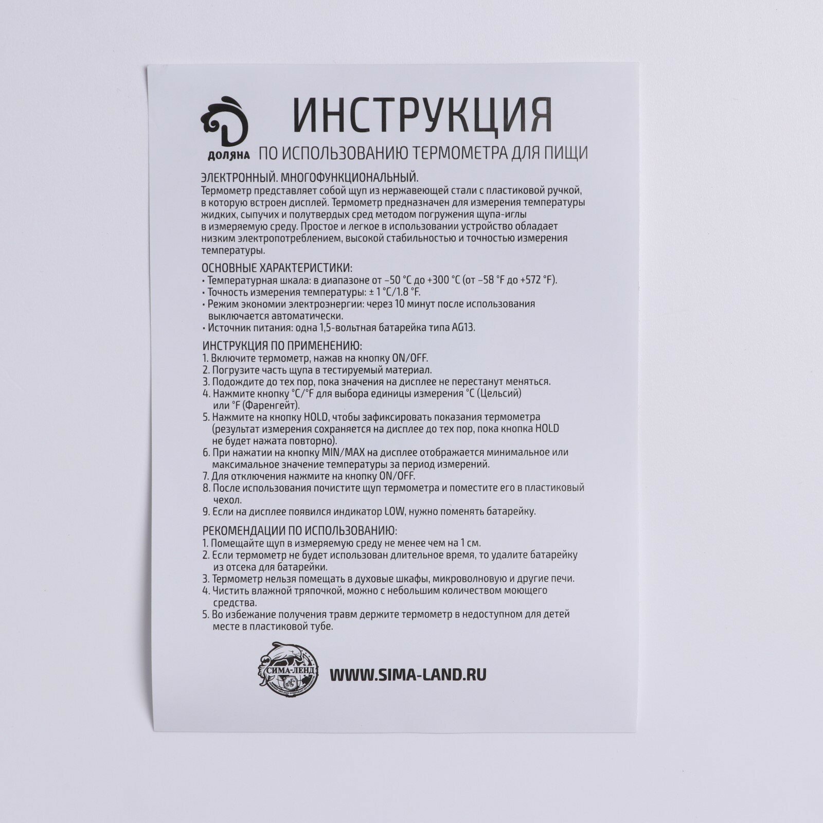 Термометр для пищи электронный на батарейках Доляна в коробке интересное: