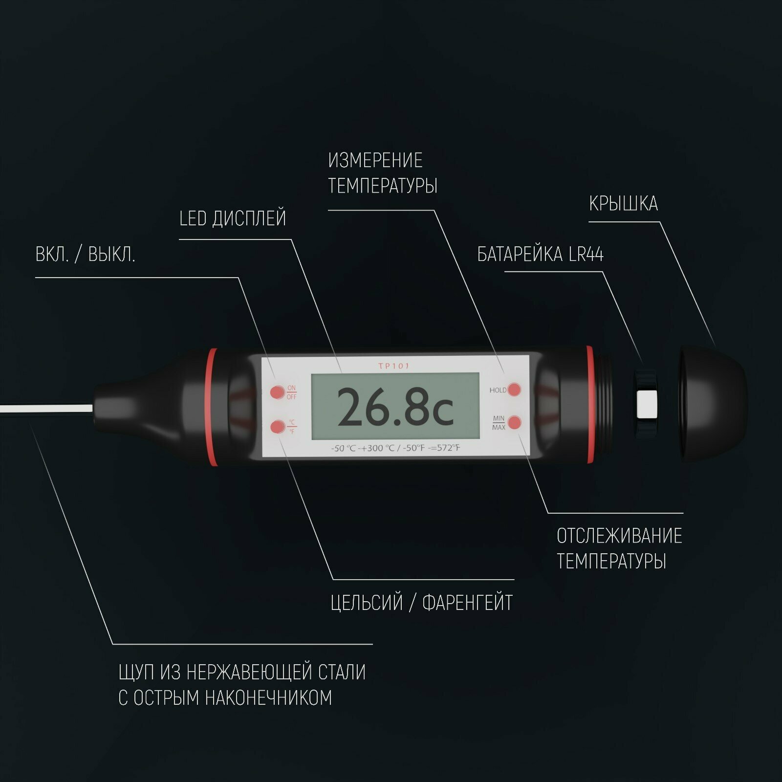 Кулинарный термометр с щупом, термощуп