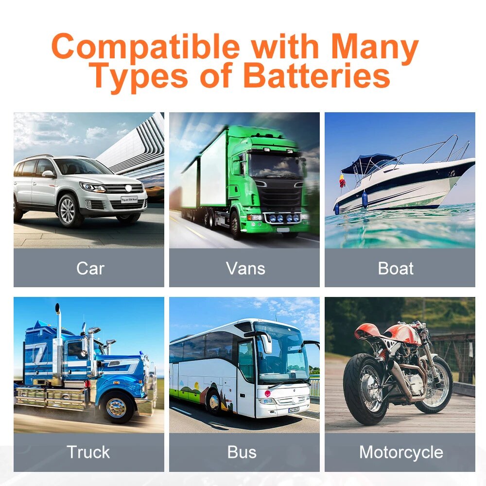 | Дополнительная информация | Дисплей LCD 2.4" Для вольтажа 12v Русский язык есть Функции Системное напряжение 12 вольт и испытание на напряжение в форме волны, Результат теста хорошая, перезарядка или заменить, Емкость холодных каналов AMPS (CCA), DIN, EN и IEC информация относительно рейтинга батареи, Значение внутреннего сопротивления (Mω) и жизнь в процентах (%), Система и зарядная система, Запись и повторное воспроизведение данных батареи, Тест на аккумулятор, тест на закате, тест зарядки и другие дополнительные функции, Основные Стандарты Батареи CA, CCA, BCL, MCA, JIS, SAE, EN, GB, DIN И IEC Поддерживаются |