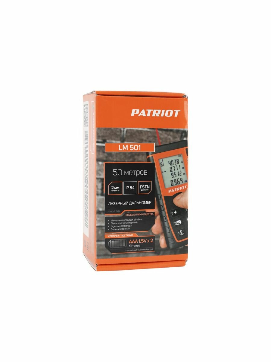 Дальномер лазерный LM 501 макс. дистанция 50м измерение площади объема подсветка память 30изм. чехо, PATRIOT 120201501 (1 шт.)